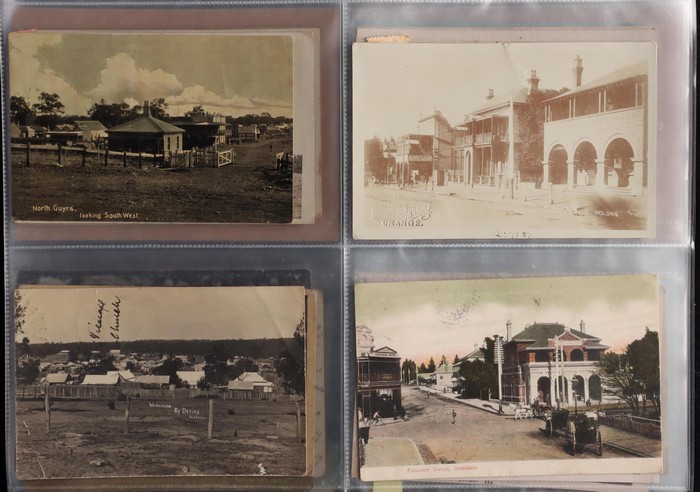 Country collection mostly pre-WWI in SG album with over 200 cards inc Jenolan Caves, Blue Mountains, South Coast, Central Coast, North Coast plus Northern Tablelands. Then Bathurst & Central West inc Orange, Wellington, Dubbo, Lithgow etc. Southern