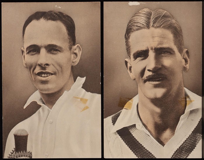 1936 Amalgamated Press set of 10 Postcards inc Don Bradman, WA Brown, C Grimmett, W O'Reilly, W Oldfield & L Darling. Some surface adhesions, mixed VG-VF. (10) (Image1)
