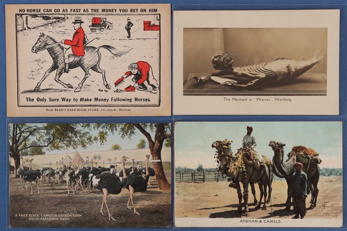 collection early 1900s to modern era with Agriculture-Rural Scenes (62), mostly NSW with emphasis on Cattle & Sheep. Alphabet Cards photographic style (12) from a single 1904 correspondence. Amusement Centres/Fun Parks (15). Animals & Birds (115) inc
