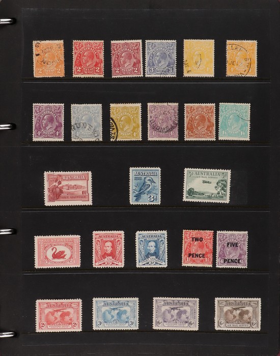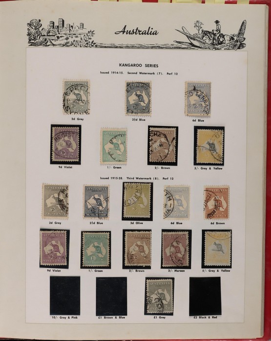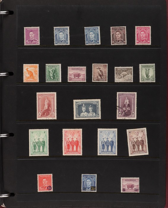 398 image1914-69 concise collection in 2 contemporary small springback albums with 1914 Kookaburra 6d Engraved, 1930s Commem sets inc 1934 VIC Cent (both perfs) & 1935 KGV SJ to 2/-, 1937 KGVI to £1 Robes, 1949 Arms to £2. Useful QEII pre-decimals to £2 Navigator & selected decimals to 1969 Christmas. Some slightly mixed condition inc some VFU, cat $700, retail similar. (570) (Image1) (Image2) (Image3) (Image4) (Image5) (Image6) (Image7) (Image8) (Image9) (Image10) (Image11)