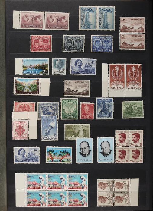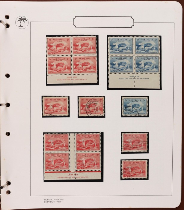 392 image1914-53 Pic/Commem collection inc 1914 Kookaburra 6d M & U. 1927-30 Commems perf OS set of 6 VFU/CTO. 1931 Kingsford Smith set MNH/CTO. Airmail Service 6d (4) MNH/CTO inc OS opts. 1932 Bridge 2d (both) & 3d imprint blks of 4. 1934 VIC Cent set CTO plus extra 1/- MNH. 1935 KGV SJ set to 2/- MLH. 1936 SA & 1937 NSW sets M & U. 1949 Arms 10/-, £1, £2 opt SPECIMEN VFM (cat $165). 1953 Produce Food set blks of 9 MNH. Plus others inc Sturt 1½d plate number 1, 2 blks of 4. All appear fresh & clean, ACSC cat $1500+. (130) (Image1) (Image2) (Image3) (Image4) (Image5) (Image6) (Image7) (Image8) (Image9) (Image10) (Image11) (Image12) (Image13) (Image14) (Image15) (Image16) (Image17) (Image18) (Image19)