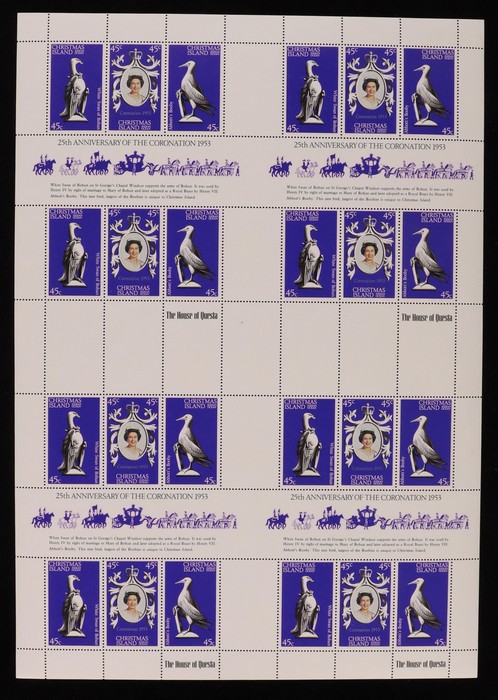 Coronation SJ M/Sheet comp uncut sheet of 4 M/Sheets. VF fresh MNH. SG 96. Scarce in this format. (Image1)