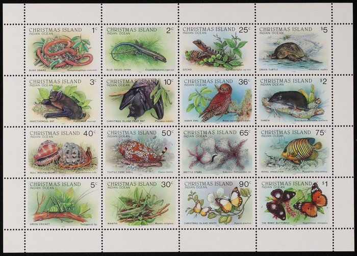 1c-$5 sheetlet of 16 with 1988 imprints at base of all stamps, from PO Packs. VF fresh MNH. SG 229a cat £35. Retail $95. The scarcest issue of Christmas Island.