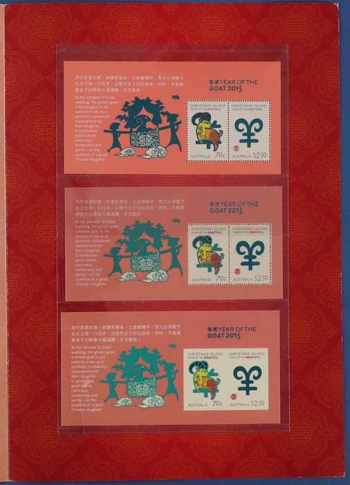 Goat $2.80 M/Sheet (3) in folder with normal, self-adhesive & special printed on silk. VF fresh MNH. Retail $72. (Image1) (Image2)
