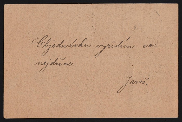 8h Post Card with 'Plzen 10 II 19' cds & underpaid with Hradcany 5h h/s 'T' tied by 'Doudlevce 11 II 19' cds. Rare provisional Postage Due. (Image1) (Image2)