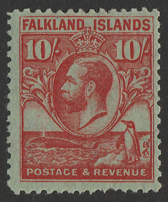 Penguin 10/- carmine on emerald. VF fresh M. Scott 63 cat US$225. SG 125 cat £250. (P) (Image1)