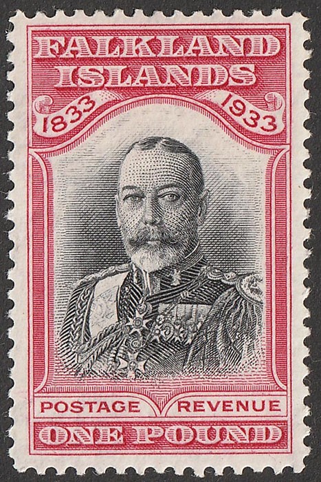£1 black & carmine KGV. Superb fresh MLH. Scott 76 cat US$2500. SG 138 cat £2500. Key top value. (P) (Image1)
