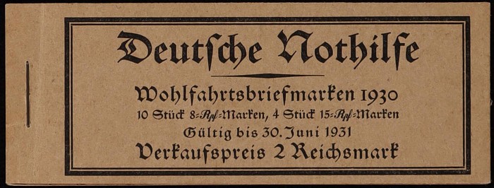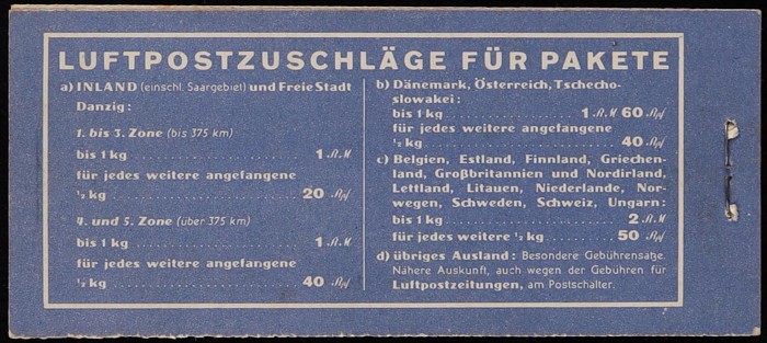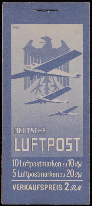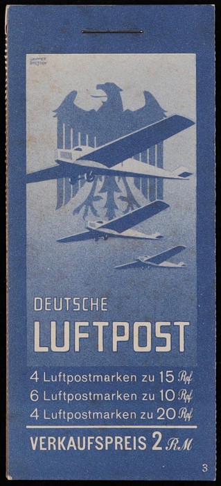 booklet 2RM with panes of Eagle 10pf & 20pf with 'X' tabs. F-VF MNH, sl perf tones. SG SB27 cat £3000. Mi MH19 cat €2300. Very rare booklet. (P) (Image1) (Image2)