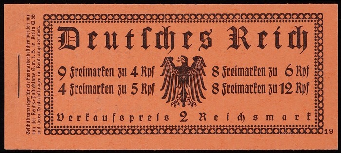 booklet 2RM code 19 with panes of Ebert & Hindenburg. F-VF MNH few perf tones. SG SB30 cat £1400. Mi MH26.2 cat €1000. (P) (Image1) (Image2)