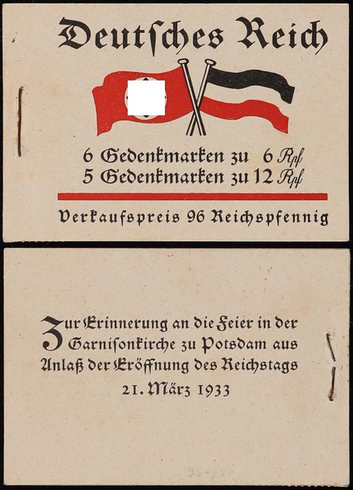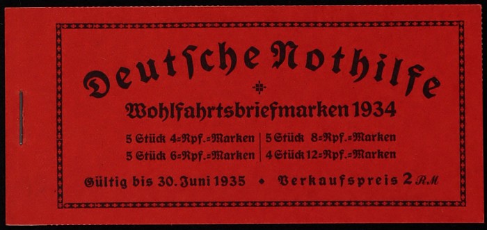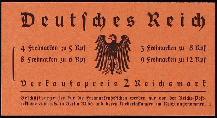 booklet 2RM with 1pf, 3pf, 5pf, 6pf, 8pf & 12pf in 4 panes. F-VF MNH, some sl gum tones. SG SB35 cat £1100. Mi MH35 cat €1100. (P) (Image1) (Image2)