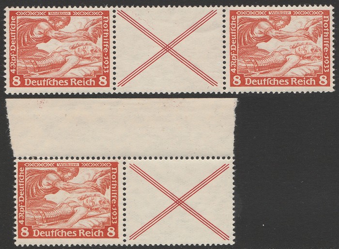 se-tenants with 8pf & 'X' tab, plus 8pf 'X' 8pf. VF fresh MNH. Mi W53-54 cat €500. (2) (P) (Image1)