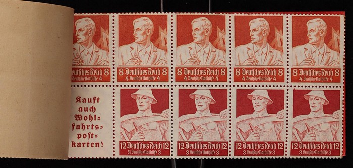 Charity booklet 2RM with 4pf, 6pf, 8pf, 12pf in 2 panes with imperf margins. F-VF MNH, some sl toned perfs. SG SB36 cat £600. Mi MH40.2 cat €400. (Image1) (Image2)