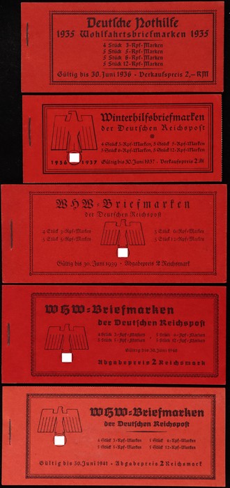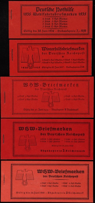 booklets 2RM with 1935 Costumes, 1936 Buildings, 1938 Scenes, 1939 Buildings & 1940 Buildings. F-VF M/MNH, 1st 3 all panes stuck, last 2 a few sl toned perfs. SG SB37, 40, 43, 45 & 47 cat £970. MI MH41, 43, 45, 46 & 47 cat €710. (4) (Image1) (Image2)