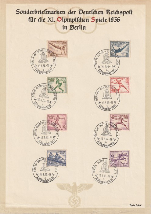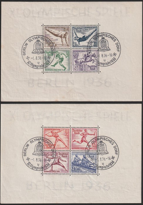M/Sheet set (147x106mm). VFU, 'Berlin 1.8.36' special pmks. Mi Blk5 & 6 cat €180. SG MS613a cat £225. (2 M/S) (Image1) (Image2)