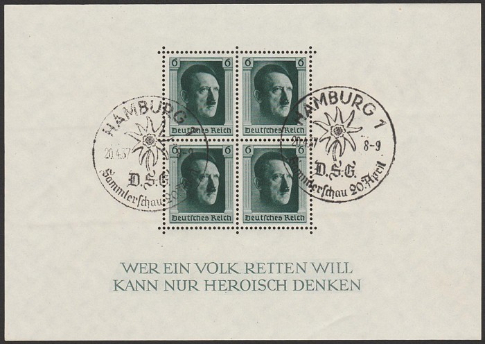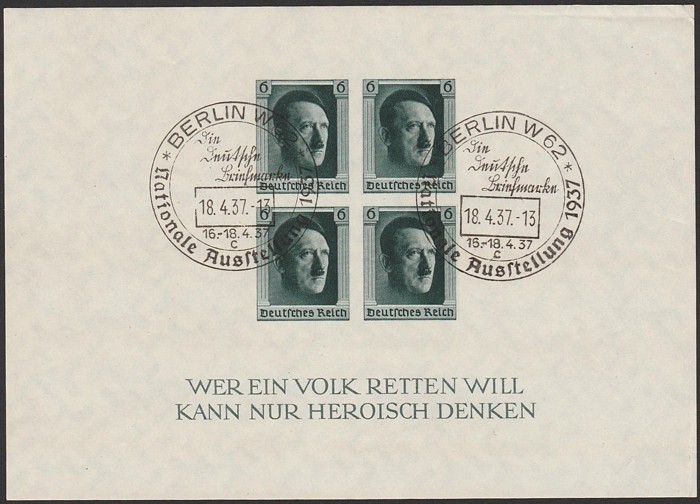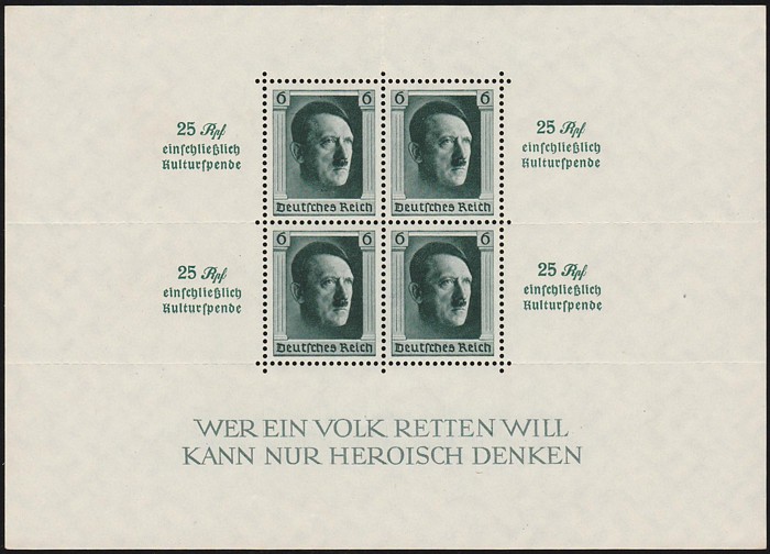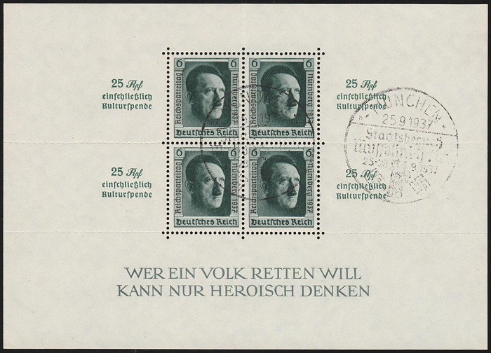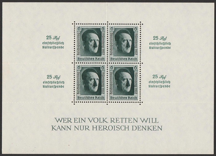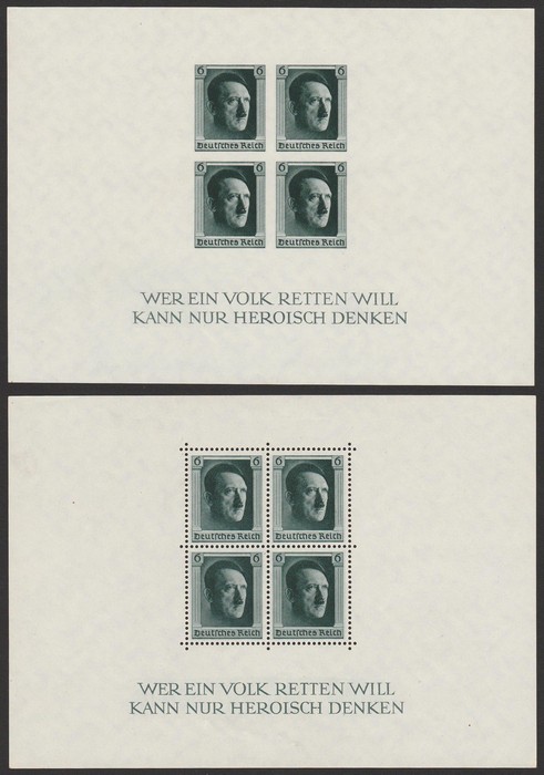 M/sheets with roul & opt margins, stamp opt Nurnberg in margins. Superb fresh MNH. Scott B106 cat US$240, SG MS 638 cat £400. Mi Blk 11 cat €320. (P) (Image1)