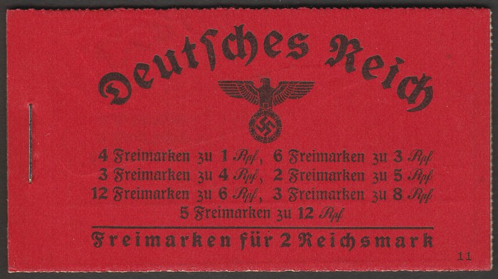 booklet 2RM code 11 with 1pf, 3pf, 4pf, 5pf, 6pf, 8pf & 12pf in 5 panes. VF fresh MNH. SG SB46 cat £325. MI MH39.1 cat €240. (Image1)