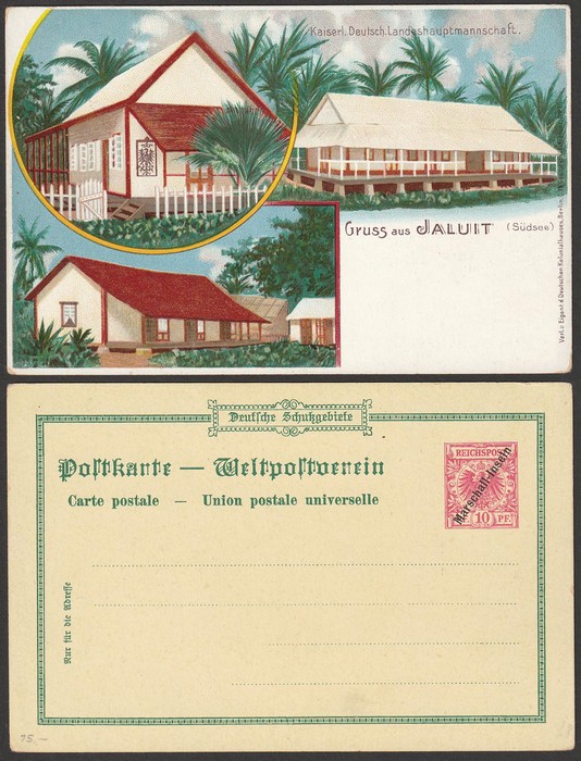 PTPO PPC (Marschall with a 'c') 5pf green & 10pf red with 'Gruss aus Jaluit' colour views. VF fresh UN, 5pf addressed. Mi PP1 & PP2. (2) (Image1) (Image2)
