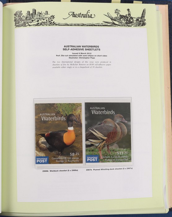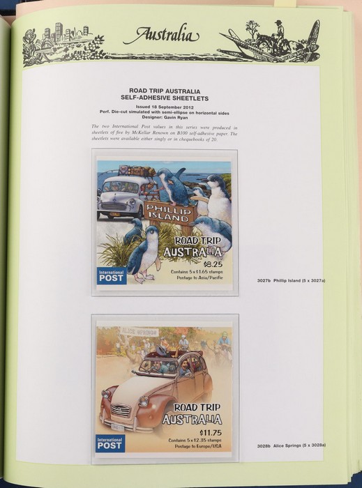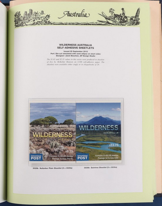 collection (FV $1330) in 4 springback binders with good variety in M/Sheets & booklets. Plus SPECIMEN opts to $20 (FV $100) & F-VFU/CTO Pics/Commems. All in near new Seven Seas hingeless pgs (retail $700), so total value well over $2000. (Image1) (Image2)