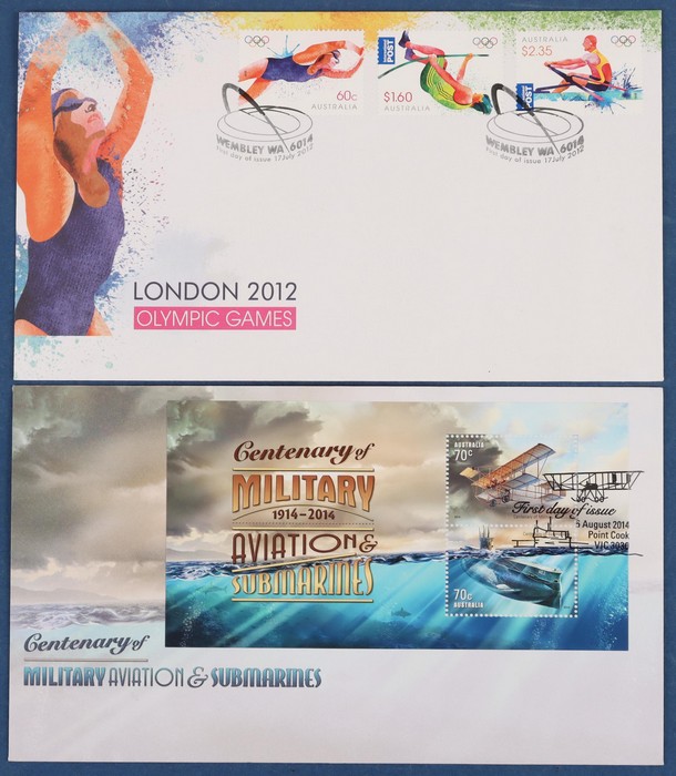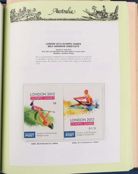 collection (330) now loose in shoebox with wide variety inc Pic/Commem sets, inc 35 M/Sheets to $10 Wetland, International Post to $20 Uluru, 2008 Beijing & 2012 London Olympics Gold Medallist FDC & scattered Territories inc Christmas Is Chinese New
