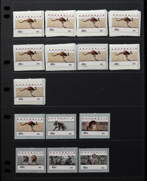 Stamps (CPS) accumulation of 1st type (25 sets), plus later Roos & Koala issue (13 sets inc PO Packs (3). All NPC 45c imprints. ACSC cat $380. FV $100+. (38 sets = 228)