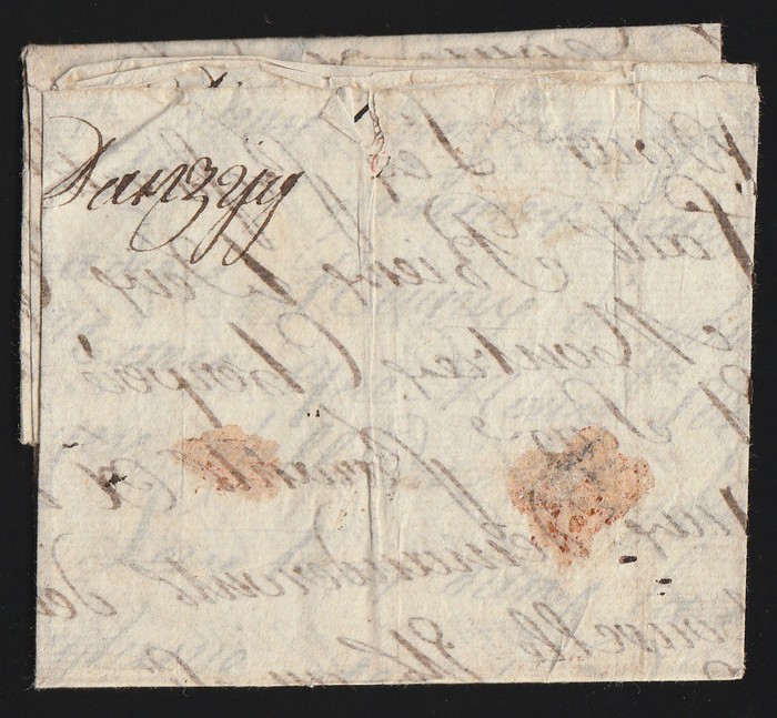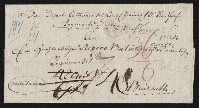 'militaria' with 'Prusse' h/s & rated '7' & 36/6 with red wax seal. Rare historical letter sent by a Bavarian soldier of the Royal Bavarian regiment stationed then in Danzig as the logistics support for Napoleon's invasion of Russia. (P) (Image1) (Image2)