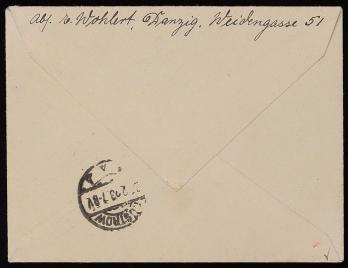 cover franked Arms 5Mk (2), 10Mk, 20Mk & 50Mk, tied by 'Danzig 23 2 23' cds. To Gustrow Mecklenburg. SG 86, 89, 90 & 99. Mi 108, 110, 111 & 127 cat €10 as loose stamps alone.