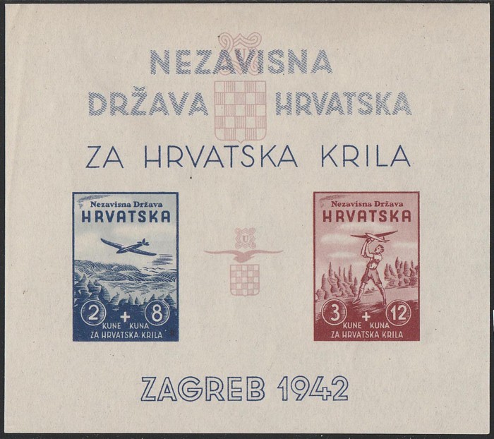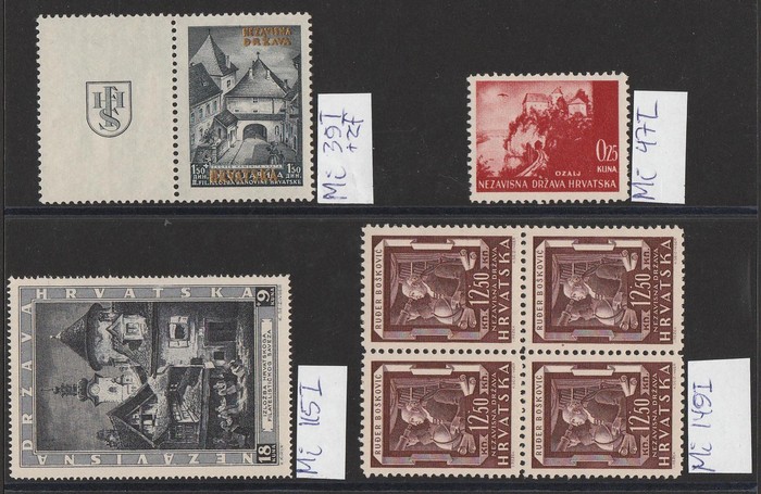 MNH varieties of engraver's secret mark inc Exhib opt 1.50K with 'S in window' variety, plus tab, 1941 Pic 0.25K with 'bird' variety. 1942 Zagreb Exhib M/S imperf with 'red R on LR cnr of blue stamp' & 1943 Exhib M/S with 'son sign' variety, plus