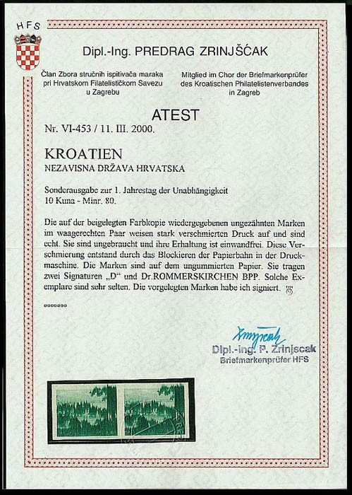 Independence opt View 10K, IMPERF horiz pr with printing greatly smudged. VF fresh UN as made. Mi 80(var) est cat €180+. Rare combination. Zrinjscak AIEP photo cert.