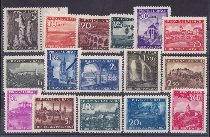 Provinz Laibach opts Def set 5c-10L inc Express tied to Registered Express cover by 'Laibach 12 IV 44' cds, with special boxed h/s & b/s. SG 65-83 & E92 cat £944 as loose stamps. Mi 1-20 cat €1100 for set on cover. (P) (Image1) (Image2)
