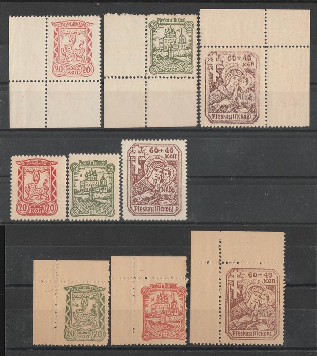 green & 60k red, plus Madonna 60+40k brown, on rough, yellowish paper, perf 11¼. VF fresh M/MNH. Mi 10x-11x, 12bx, 12by, 10y-11y, 14A-15A & 16A. (9) (P) (Image1)