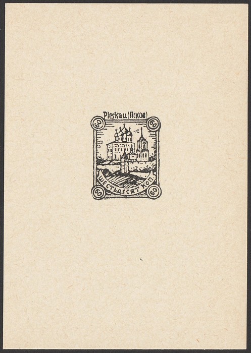 1941 'Pleskau 20 Kop' vert boxed opt Soviet 3k green-blue, imperf. VFU, with part 'Pskov 18.8.41' cds, 4 margins. Mi 3 cat €1600. Very rare genuine example as only 757 printed. 2017 Ceremuga photo cert. (P) (Image1)
