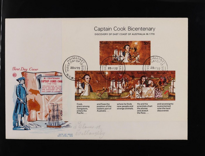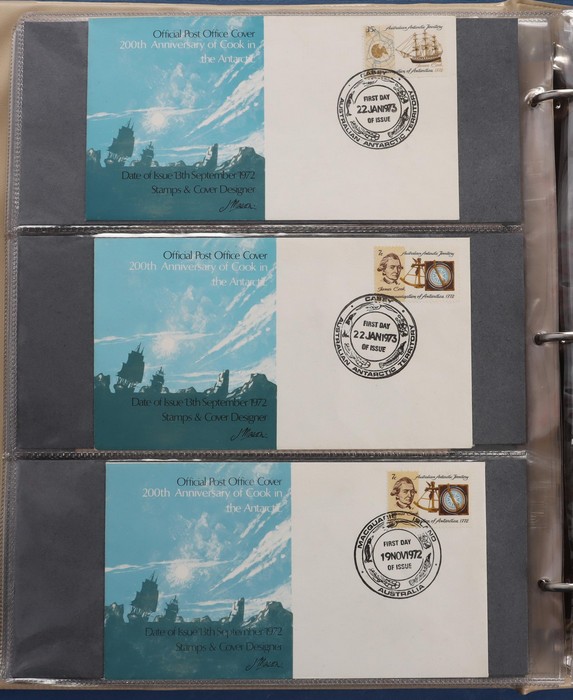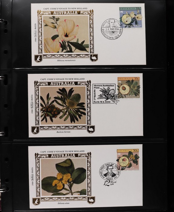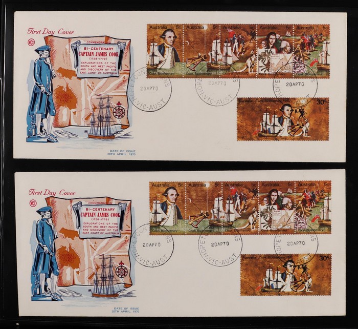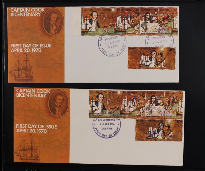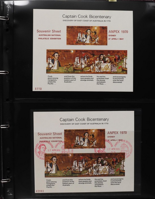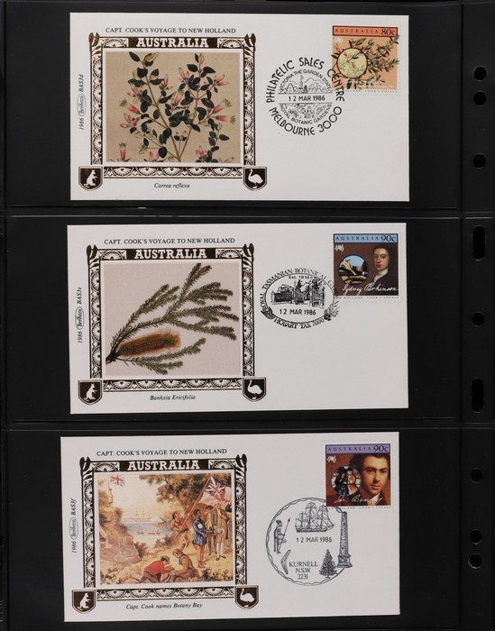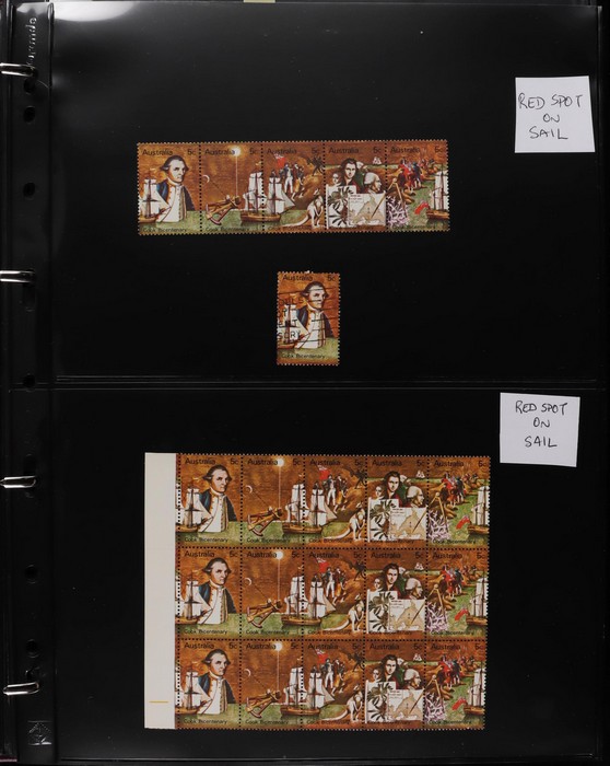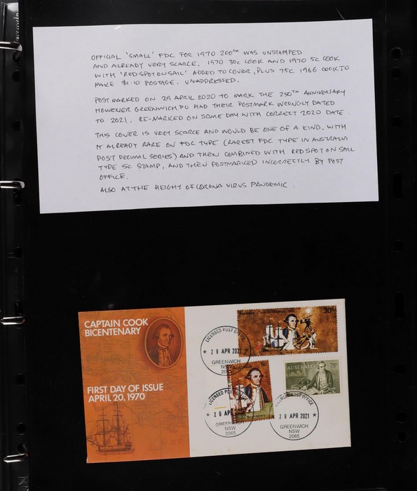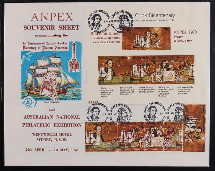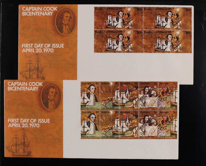 with PO large Cook, FDC (12), sets on other FDC (8), M/sheet FDC (5) plus opts (8) inc ANPEX FDC, & forgery MNH. The MNH sets (16) plus 30c lower pane of 20. Also PO Packs (4). 2nd volume inc 1986 Bicentennial sets FDC 1999 Navigator M/sheets, 2001