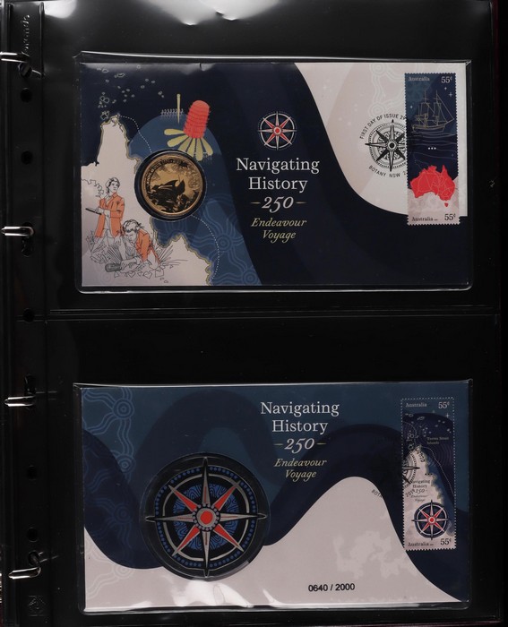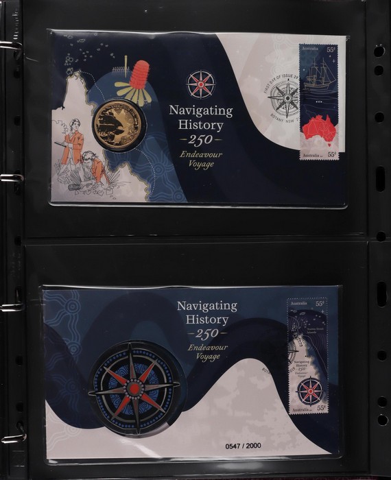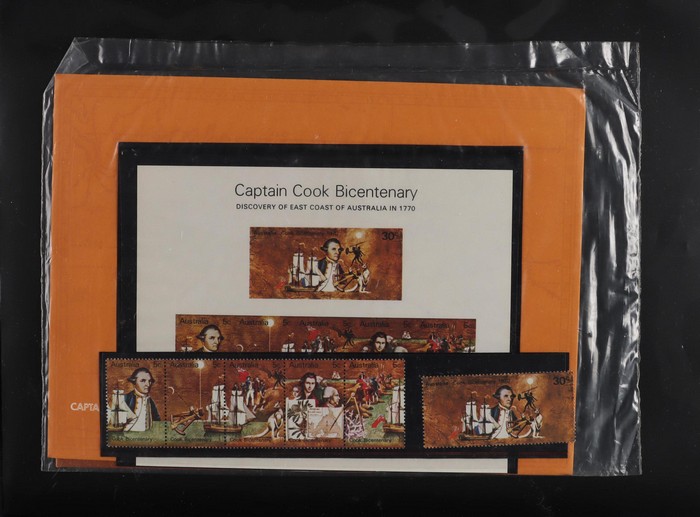 Aust/Sweden Joint Issues, 2020 250th Anniv group inc 1970 sets pmk April 2020 & Aust Post Navigating History PNC (4) M/sheets, PO Packs & booklets. (Also see World Collection section below). (Image1) (Image2)