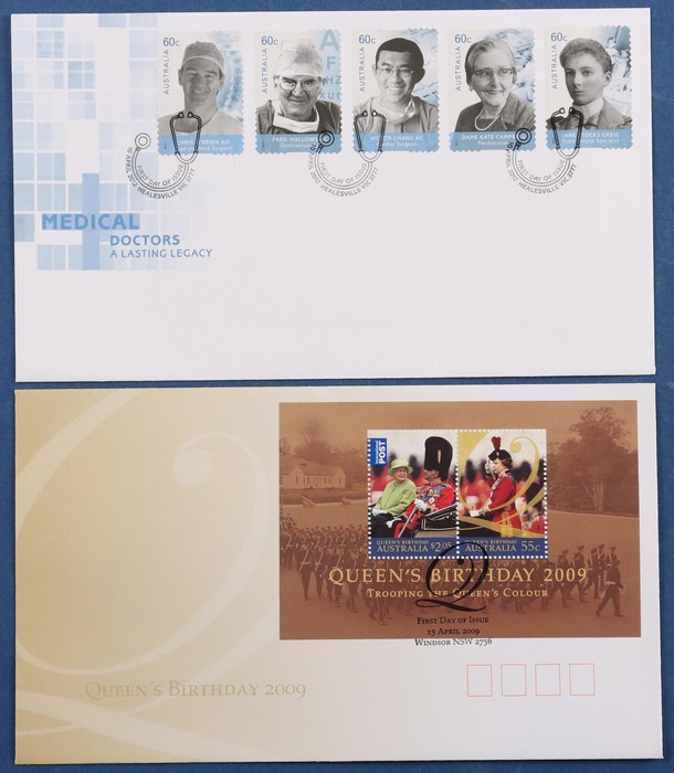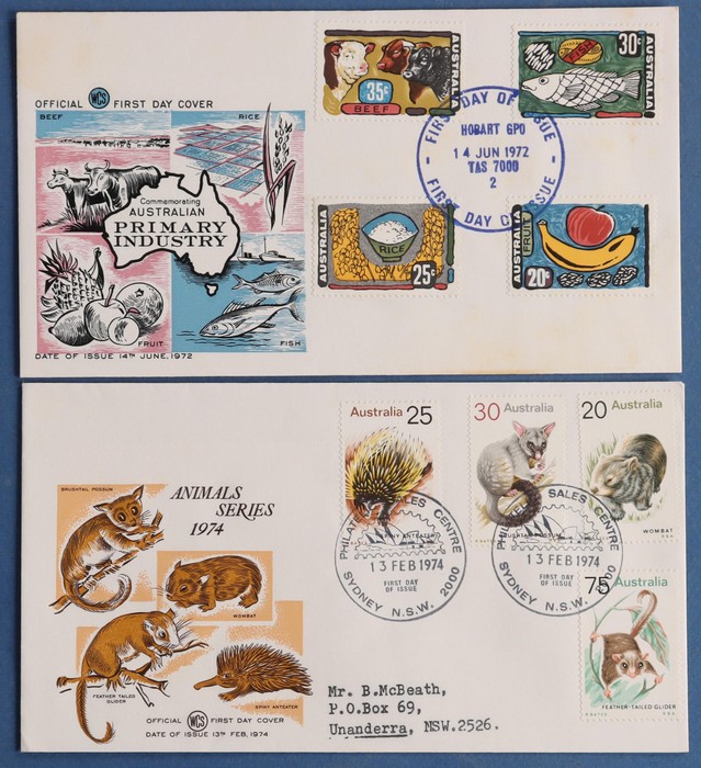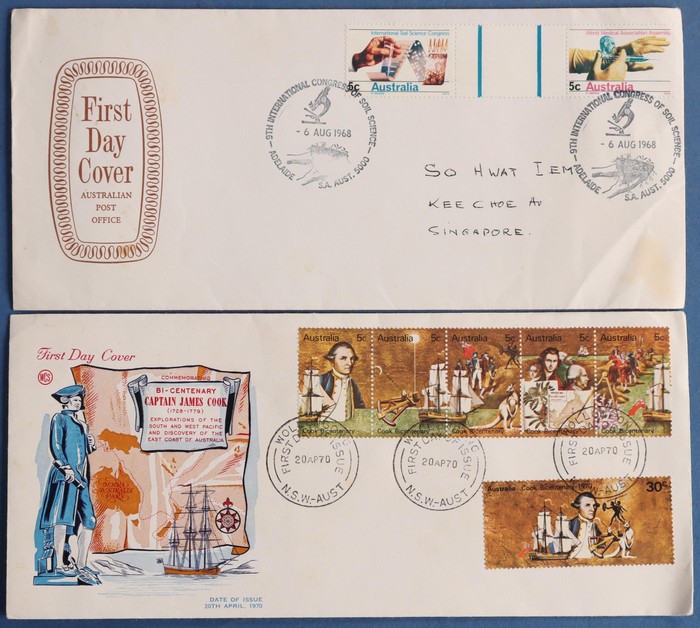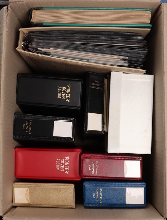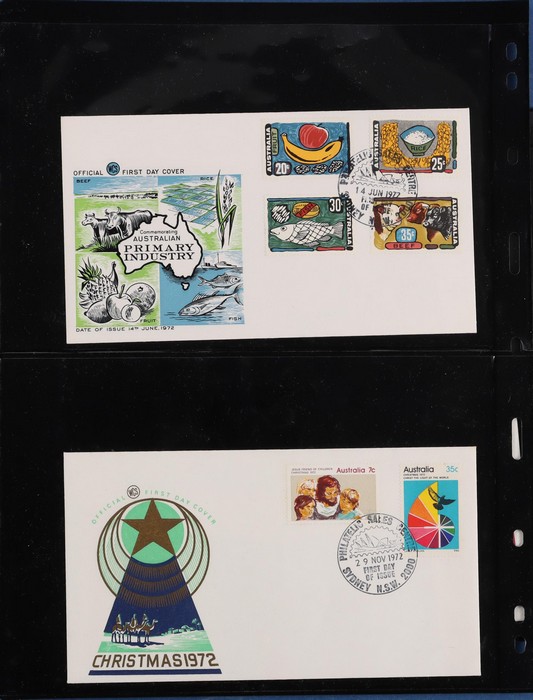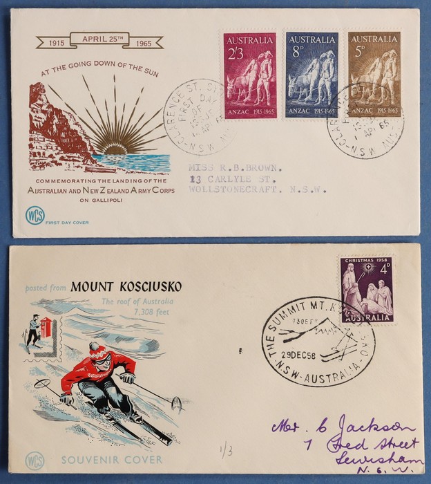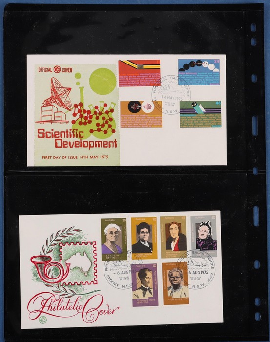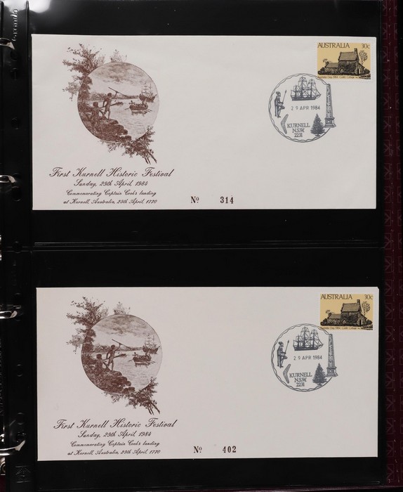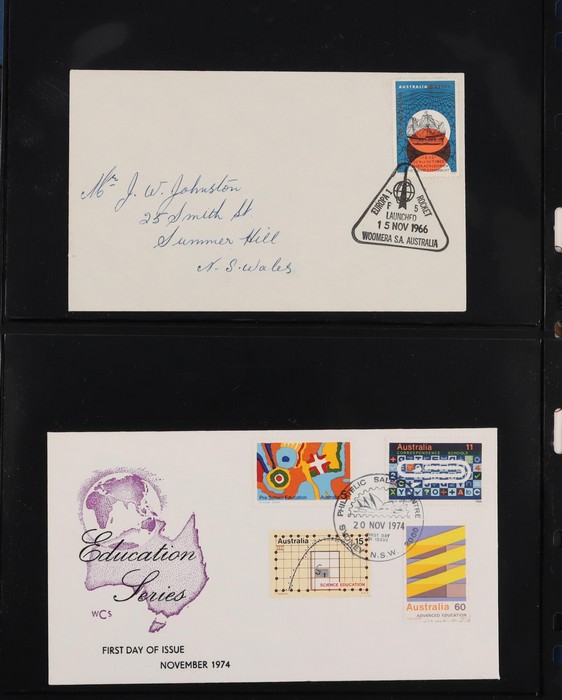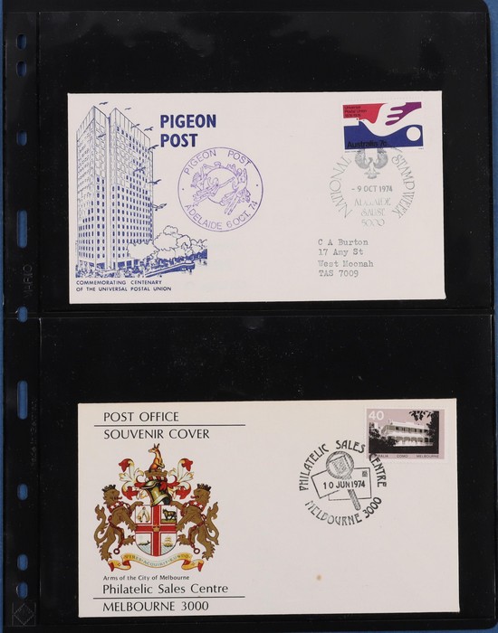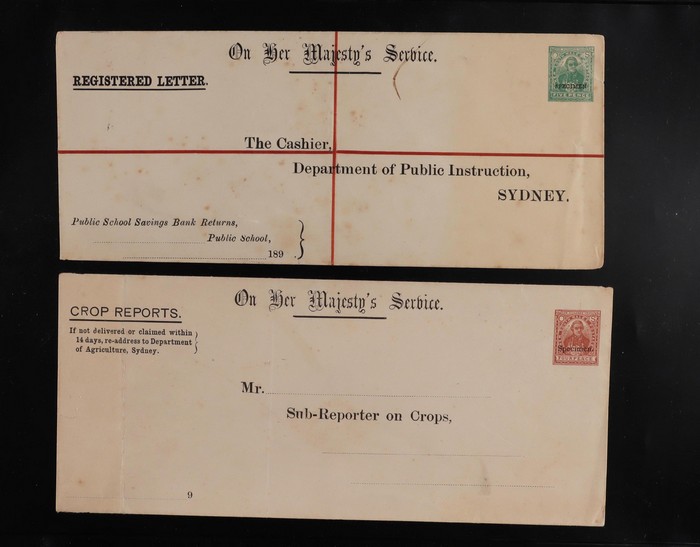 collection in 2 quality Lighthouse slipcase albums inc GB 1930s PPC (2), NSW 1890 4d green OHMS envelope Fine Used & 4d green 'Registered', 4d brown 'Crop Reports' envelopes UN. Australia 1964 7/6 & 1966 75c Cook FDC. 1970 Bi-Centenary collection
