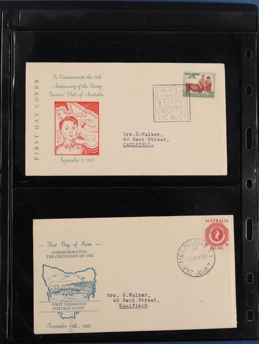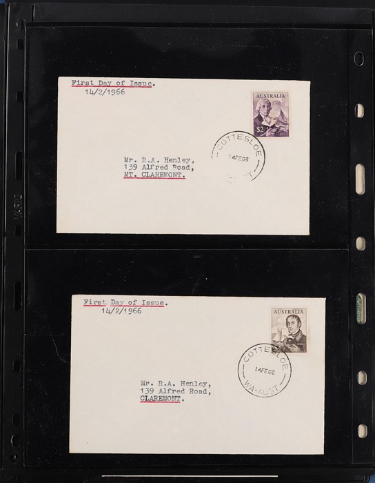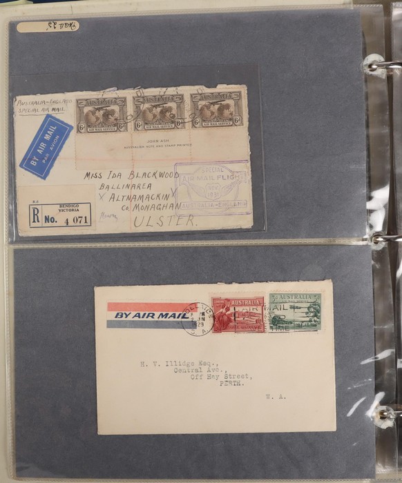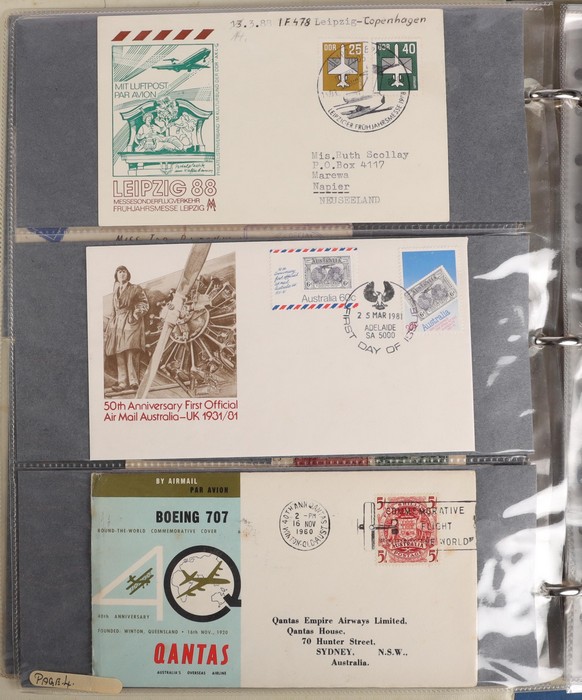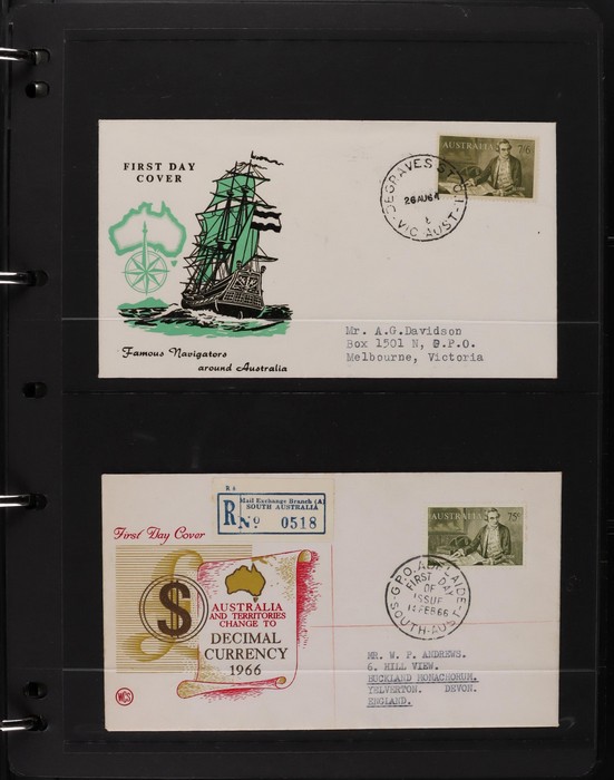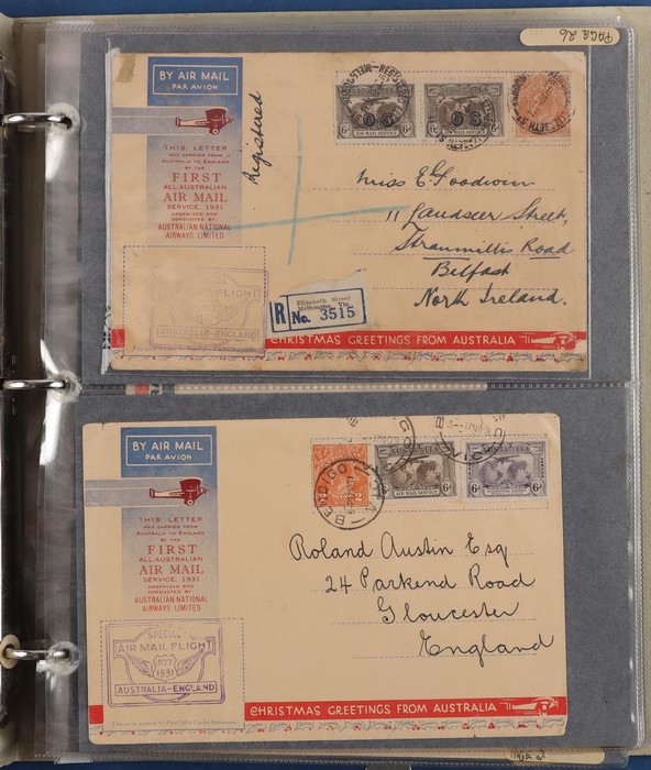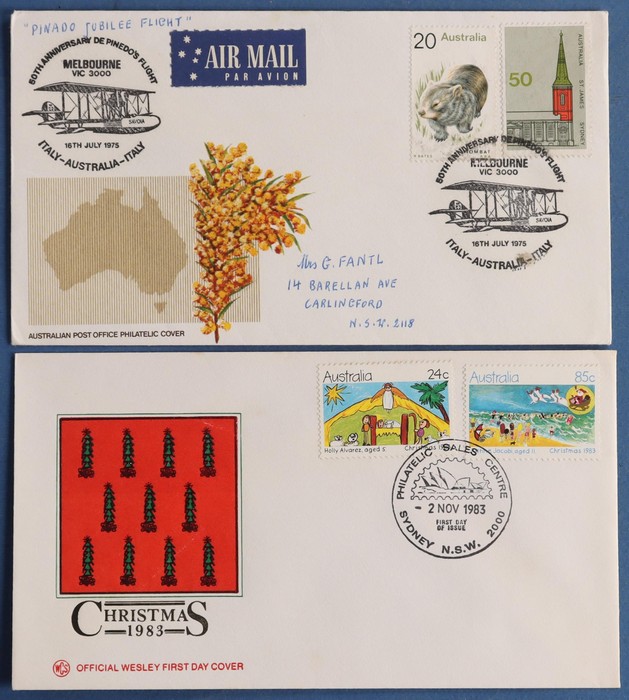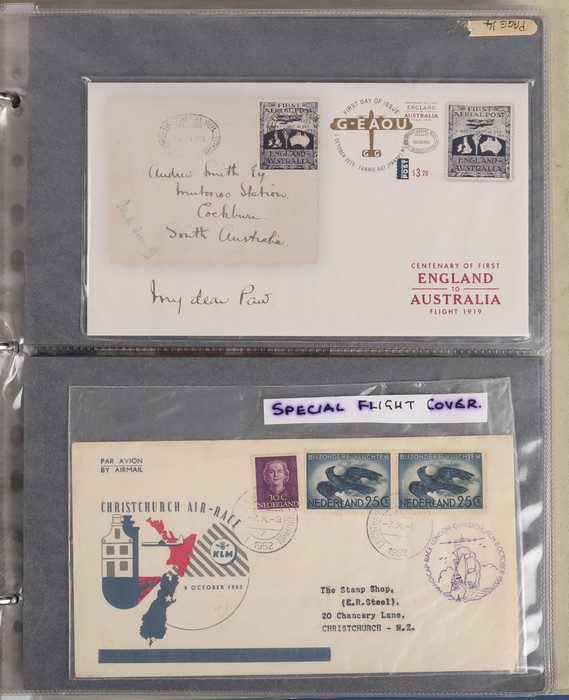 collection in albums 1929 Adelaide-Perth (2) & Perth-Adelaide FFC (AAMC cat $75). 1931 Aust-England (3, $120) & World 1950s-60s FFC (8) inc 1952 London-Christchurch Air Race. 1953-90 FDC collection (280) in 3 large albums with pre-decimals (35) &