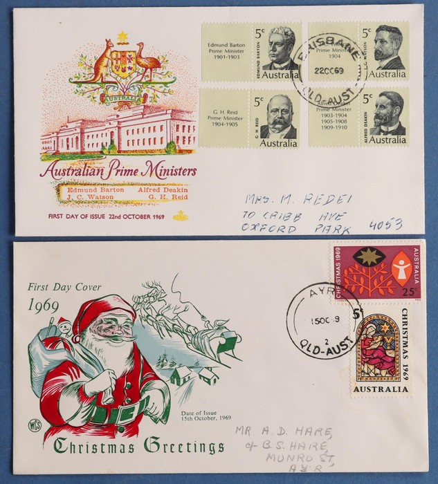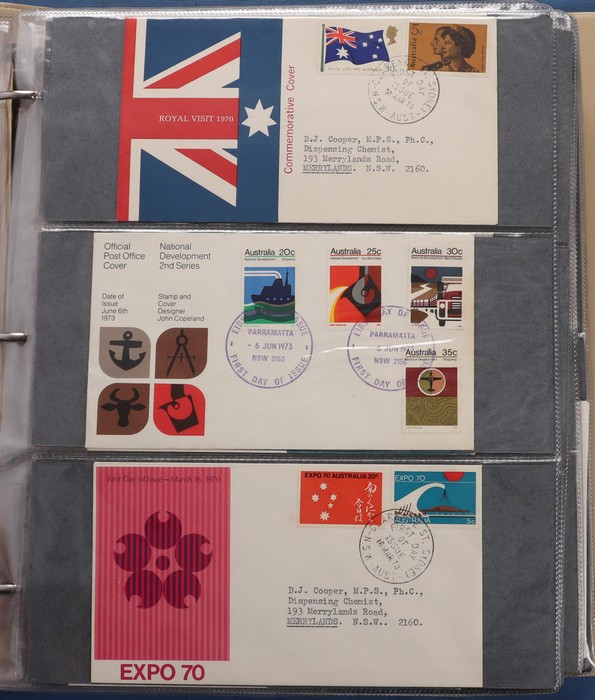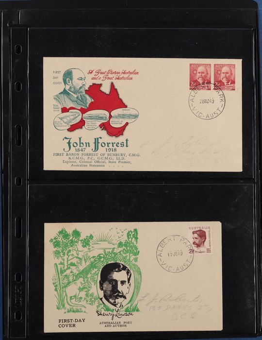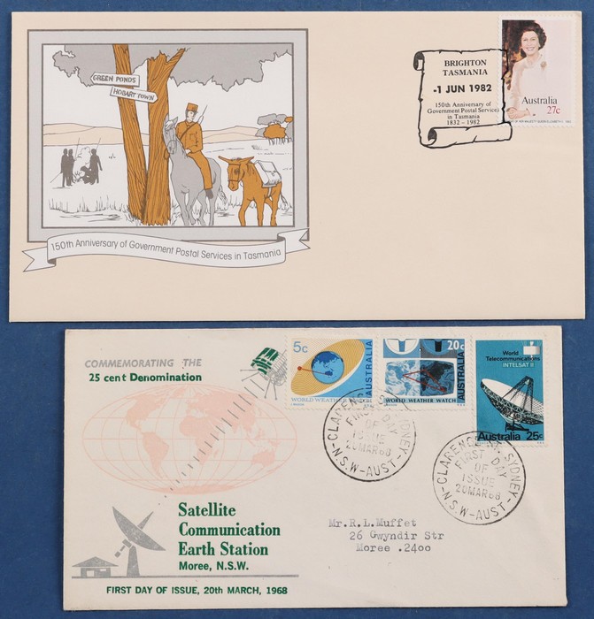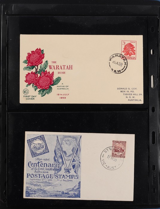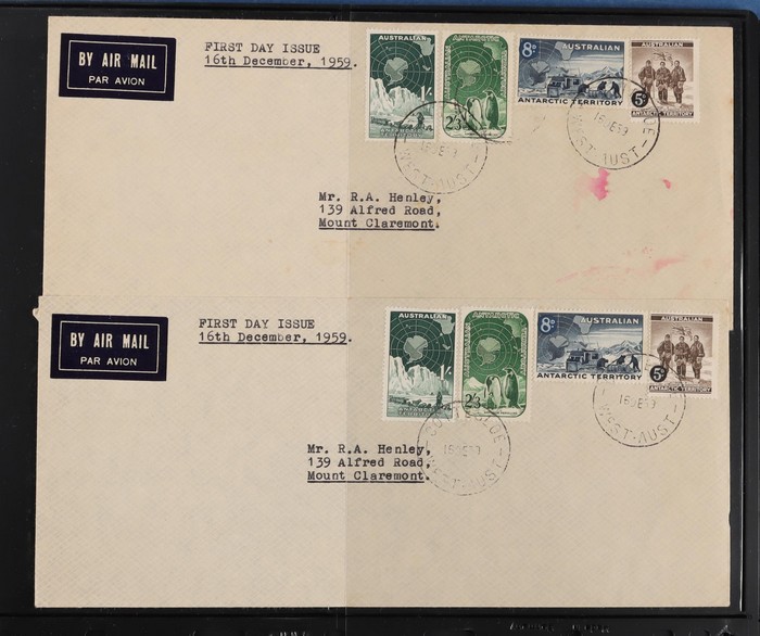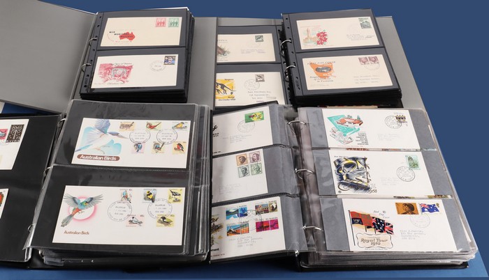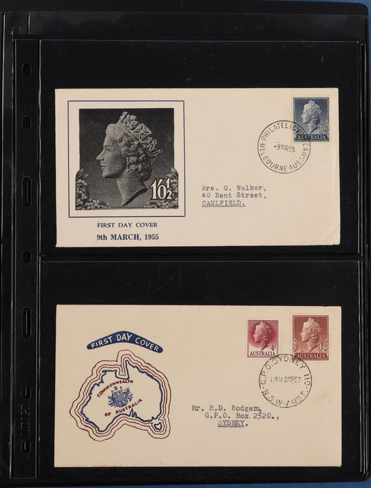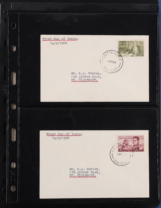 collection in albums 1929 Adelaide-Perth (2) & Perth-Adelaide FFC (AAMC cat $75). 1931 Aust-England (3, $120) & World 1950s-60s FFC (8) inc 1952 London-Christchurch Air Race. 1953-90 FDC collection (280) in 3 large albums with pre-decimals (35) &