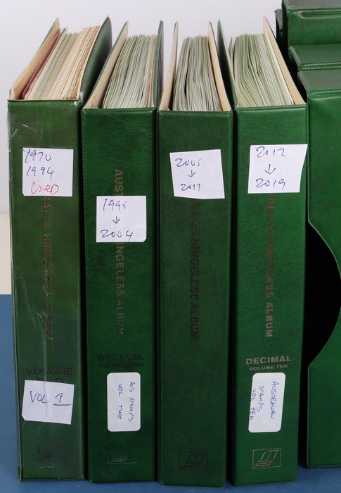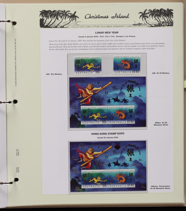 used collection 1991-2019 in Seven Seas hingeless pgs in 3 green slipcase binders. Albums a small number of mounts damaged o/w near new, retail $1050. The stamps retail $1500+, total value $2650+. (Image1) (Image2)
