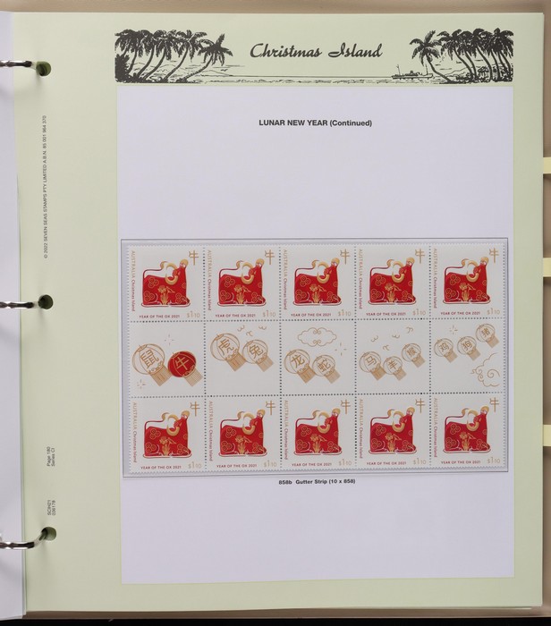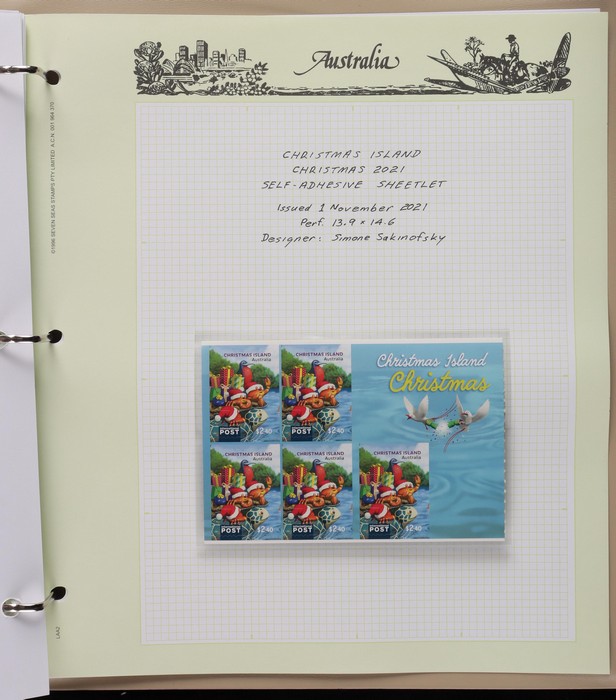 1990-2021 MNH Collection in 3 Seven Seas slipcase hingeless albums with plenty of extras inc gutter blks, booklets inc Prestige, sheetlets & exhibition opts. Fresh MNH, FV over $1000 plus another $500 for the 3 albums. (Image1) (Image2)