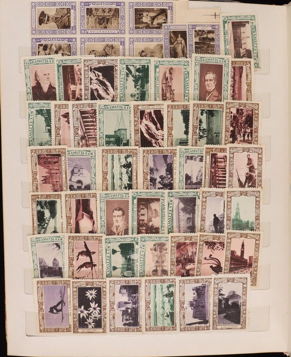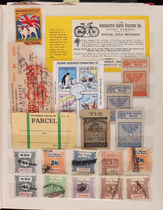 $150). NSW 1938 150th Anniv labels (42 diff) Revenues inc pre-dec QLD Tax stamps (8) to 4/- & Melbourne Patent Office $50 & $100 Fee stamps, Koala Research M/Sheets, Exhibition M/Sheets, ephemera & labels 1971 XL Postal Strike $1 stamps comp sheet of