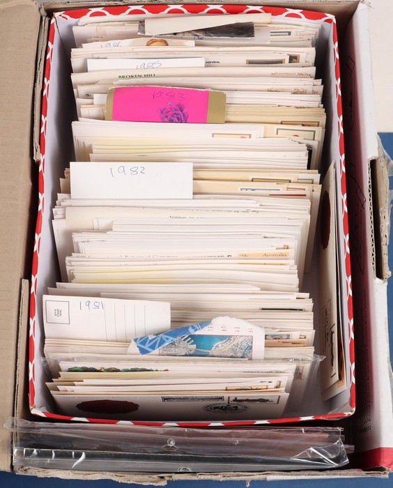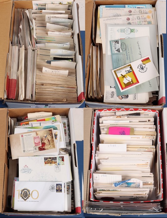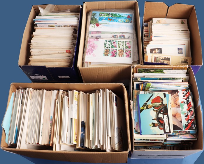 1971-2013 PO illustrated FDC inc long Commem sets & M/Sheets. Also 1970s-80s Commem/Special Event pictorial pmks. All neatly packed into 3 medium cartons. 4th carton with around 1300 PSE mixed UN/CTO. 5th & final carton with over 1200 modern PPC inc