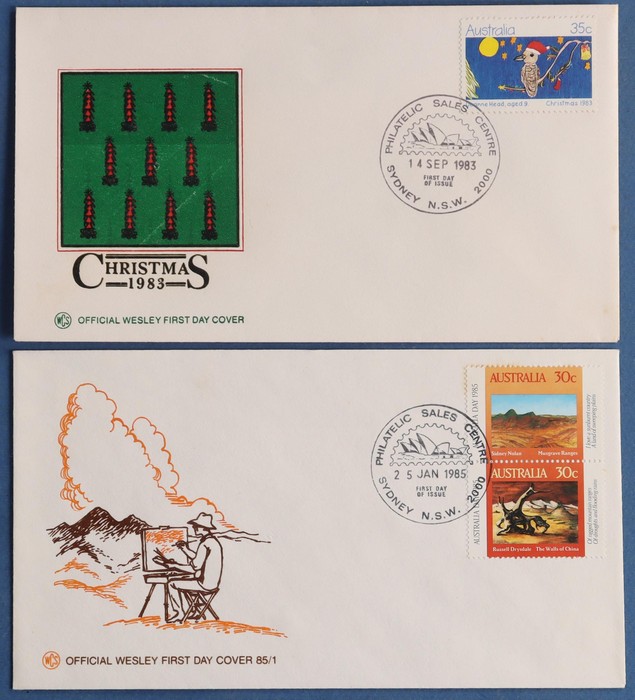 volume collection (400+) with pre-decimals (170) inc 1940s, 50s, 60s Commems with cachet variations. 1959 Flowers set to 3/- & 1959 AAT Pics to 2/3 Penguins. Decimals (240) to 1979 mixed PO/Wesley inc 1966 Birds to 30c & Navigators to $4 plus others