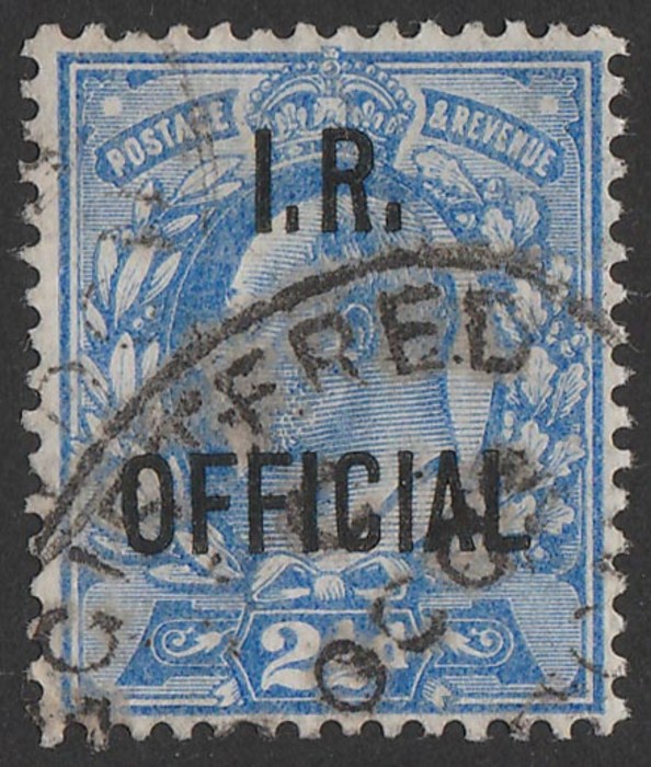 OFFICIAL' opt KEVII 2½d ultramarine. VFU, oval registered pmk, bright colour. Scott O21 cat US$310, SG Spec MO3. SG O22 cat £275. Scarce genuine. (P)