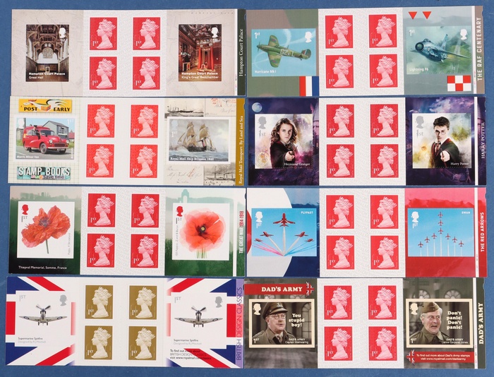 2nd Class booklets pane of 12 booklet (2), 1st Class pane of 4 large (6 booklets), pane of 6 1st Class booklet (3) & pane of 12 1st Class booklet (5). Current FV £164 (cat £175). Grand total FV £190 = A$400. (53) (Image1) (Image2)