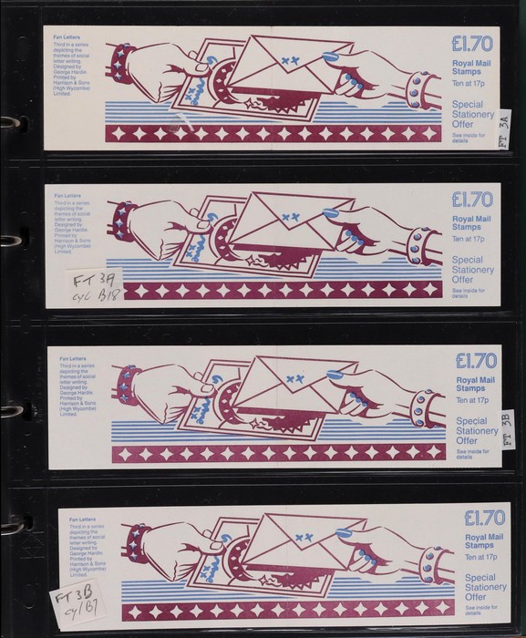 collection Part 2 1980-89 in Lighthouse binder. Noted £1.20 booklets SG FJ1-FJ6, £1.25 booklets SG FK1-FK8, £1.30 booklets SG FL1-FL14, £1.40 booklets SG FM1-FM6, £1.43 booklets SG FN1-FN6, £1.46 booklets SG