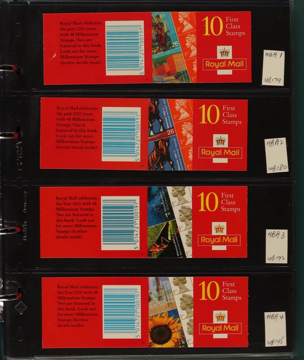 cylinders, variations etc. Also 1999-2000 panes of 8 Machins & pr of Millennium stamps SG HBA1-HBA4, also 1989-98 panes of 10 2nd Class stamps SG HC1-HC22 with extras/variations, cylinders etc. An attractive, neatly laid out & identified collection