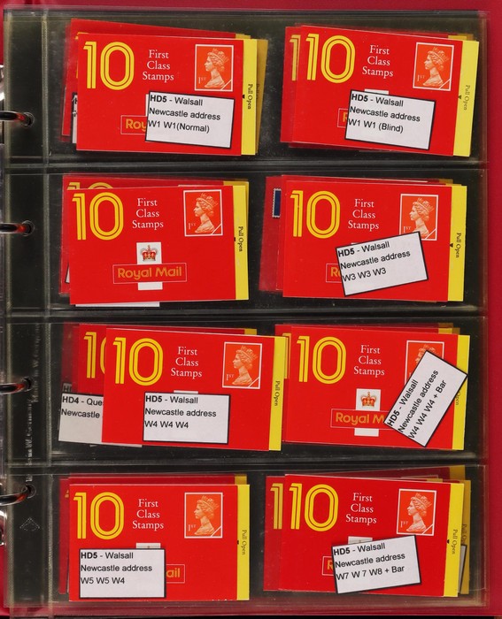 collection Part 7 1990-92 NVI 1st Class stamps inc barcode panes of 4 SG HB3 (9) with varieties, diff prints etc. Also panes of 10 1st Class inc SG HD3, HD4, HD5 (11) with variations of perf, cylinders, printers etc. Current FV £280 = A$580.