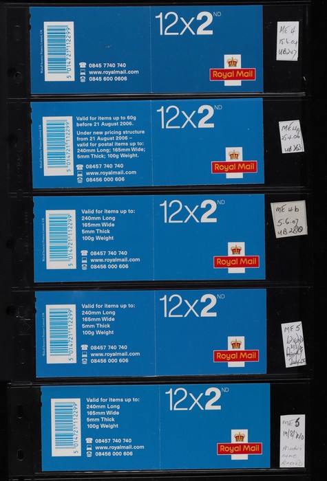 collection Part 18, Machins 2001-16 containing 2nd Class stamps SG MA1 panes of 6 (2), SG MC1 pane of 10 (1). Also SG ME1-ME6 (12 stamps) with extras, 9 booklets MNH. FV alone £112 = A$230, retail much higher. (15) (Image1) (Image2)