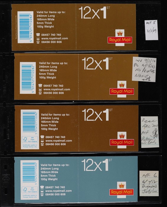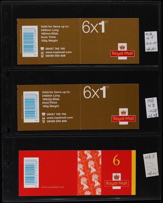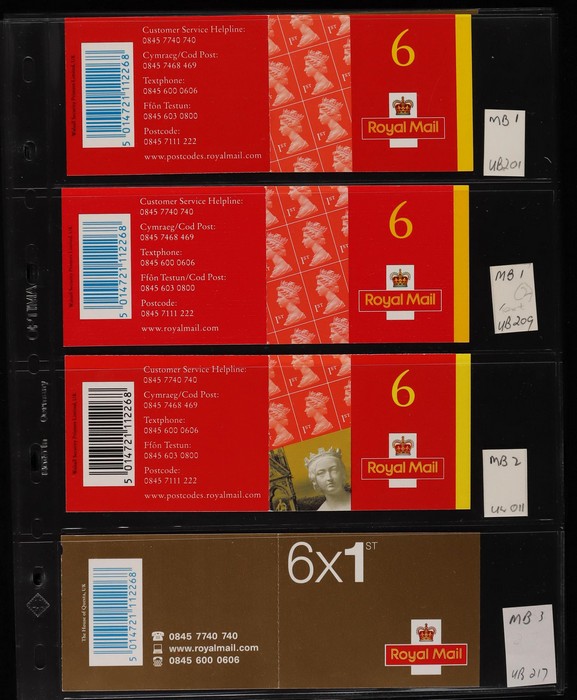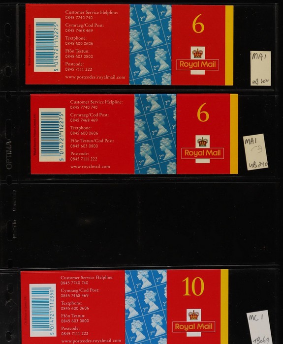collection Part 20, Machins 2001-12 containing (6) 1st Class stamps SG MB1 to MB11 with 'a' numbers, 24 booklets with (144) 1st Class stamps, current FV £244 = $490. (24 booklets) (Image1) (Image2)