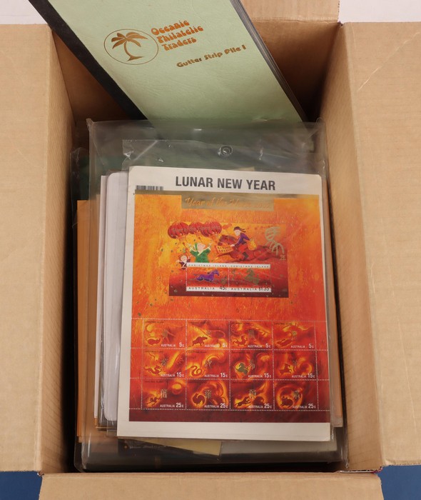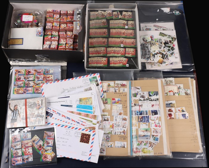 to 2015 $1 Pic/Commem mess inc 1986 Christmas 30c sets of 5 (200), scarce ex M/Sheets! 1996 AFL Centenary 45c P&S sets (1600) bundles of 100. Then 40 sets of sheet stamps & another 80 M/sheets CTO. 1990s-2010s accumulation of sheet stamps inc $1