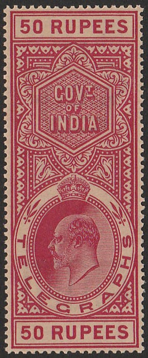 KEVII Telegraphs 50R carmine. Superb MNH. SG OT5 cat £375 for M, should be at least double, £750 MNH. (P) (Image1)